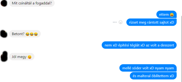 Karina természetesen üzenetváltásban, aggódva ( el ne hidd, fetrengett a röhögéstől!!) írt rám. Következő volt a párbeszéd: